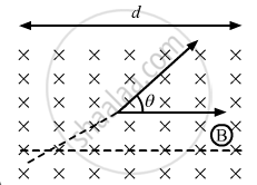 A particle of mass m and charge q is projected into a region that has a perpendicular magnetic field B. Find the angle of deviation (figure) of the particle as it comes out of the magnetic field if the width d of the region is very slightly smaller than
