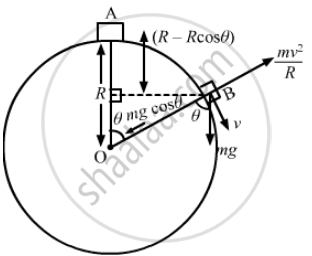 \[\Rightarrow \frac{1}{2}\text{m}\nu^2 - 0 = \text{mg} \left( \text{R - R} \cos \theta \right)\]