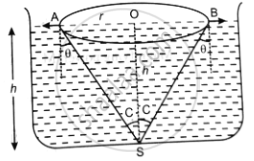 A point source of monochromatic light S is kept at the centre C of the bottom of a cylinder. The radius of the circular base of the cylinder is 15.0 cm.