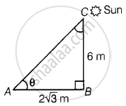 Let BC = 6 m be the height of the pole and AB = `2sqrt(3)` m be the length of the shadow on the ground.