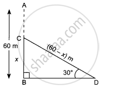 A portion of a 60 m long tree is broken by a tornado and the top struck up the ground making an angle of 30° with the ground level. The height of the point where the tree is broken is equal to ____________.