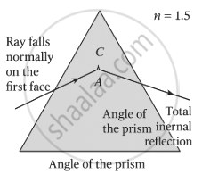 A ray of light falls normally on the face of a glass prism (n = 1.5). Find the angle of the prism if the ray just fails to emerge from the second face.