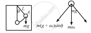 On comparing the above equation with the expression, F = ma,\[\text{Acceleration}, a = \left( g - a_0 \right) sin\theta = \frac{\left( g - a_0 \right)x}{l} = \omega^2 x\] \[\text{Time period of elevator when it is moving downward}\left( T' \right) \text{ is given by,} \]