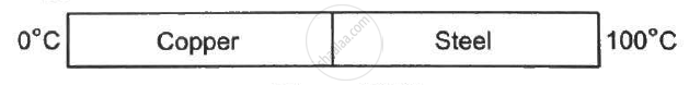 Figure (28-E2) shows a copper rod joined to a steel rod. The rods have equal length and equal cross sectional area. The free end of the copper rod is kept at 0°C and that of the steel rod is kept at 100°C. Find the temperature at the junction of the rods. Conductivity of copper = 390 W m−1°C−1 and that if steel = 46 W m−1°C−1.