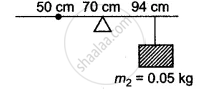 A uniform metre scale can be balanced at the 70.0 cm mark when a mark when a mass 0.05 kg is hung from the 94.0 cm mark