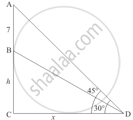Let BC be the tower of height hm. AB be the flagstaff of height 7 m on the tower and Dbe the point on the plane making an angle of elevation of the top of the flagstaff is 45° and angle of elevation of the bottom of the flagstaff is 30°.