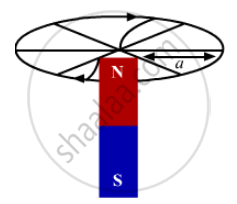 A very long bar magnet is placed with its north pole coinciding with the centre of a circular loop carrying as electric current i. The magnetic field due to the magnet at a point on the periphery of the wire is B. The radius of the loop is a. The force on the wire is
