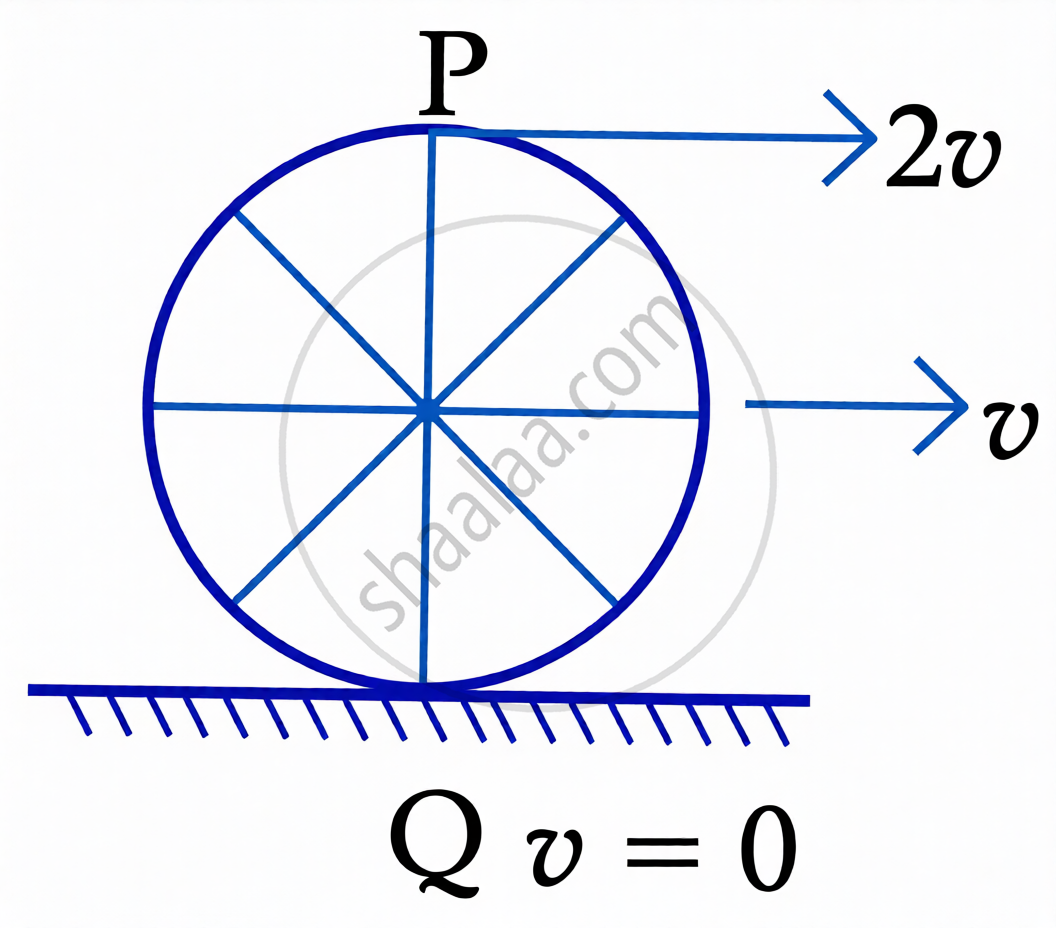 A wheel of a bullock cart is rolling on a level road as shown in the figure below. If its linear speed is v in the direction shown, which one of the following options is correct (P and Q are any highest and lowest points on the wheel, respectively)?