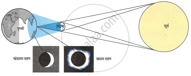 आकृति बनाओ और शीर्षक दो: खग्रास और खंडग्रास सूर्यग्रहण. - Geography [भूगोल]
