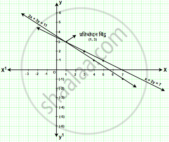 ∴ प्रश्न के अनुसार अरुष के लिए: 2x + 3y = 11