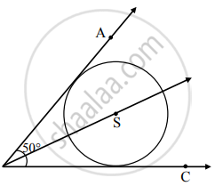 ∠ABC = 50°. बिंदू S हा ∠ABC च्या कोनदुभाजकावर कोणताही एक बिंदू घ्या. बिंदू S केंद्र असलेले असे एक वर्तुळ काढा, की ∠ABC च्या भुजांना स्पर्श करेल.
