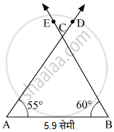 ∆ABC असा काढा की, m∠A = 55°, m∠B = 60°, आणि l(AB) = 5.9 सेमी.