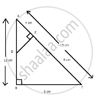 - If AC = 13 cm, BC = 5 cm and AE = 4 cm. Find DE and AD.