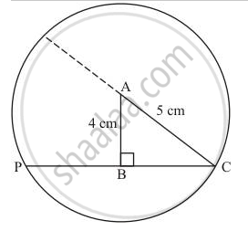 We are given a right triangle ABC such that `angleB ` = 90° , AC = 5 cm, AB = 4 cm. A circle is drawn with A as centre and AC as radius. We have to find the length of the chord of this circle passing through C and B. We have the following figure regarding the given information.