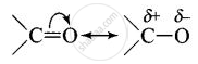 Carbonyl group is polar in nature. Due to larger electronegativity of oxygen as compared to carbon, carbon acquires partial positive charge while O acquires partial negative charge.