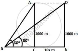 Let A be the aeroplane and B be the observer on the ground. The vertical height will be AC = 1 km = 1000 m. After 10 seconds, let the aeroplane be at point D.