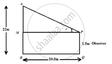 An observer 1.5 metres tall is 20.5 metres away from a tower 22 metres high. Determine the angle of elevation of the top of the tower from the eye of the observer.