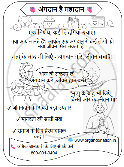 ‘अंगदान है महादान’ - विषय पर एक जनहितकारी आकर्षक विज्ञापन लोगों को प्रोत्साहित करने हेतु लगभग 40 शब्दों में तैयार कीजिए।
