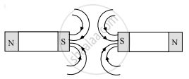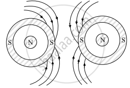 Draw a diagram to illustrate the magnetic lines of force between the south poles of two such magnets.