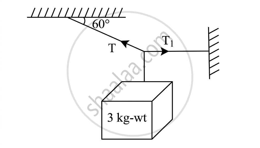 A body of weight 3 kg is suspended as shown in the figure, the tension 'T' in the horizontal string (in kg-wt) is ______.
