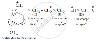 \[\ce{CH2 = \overset{⊕}{C}H}\] | \[\ce{CH3 - \overset{⊕}{C}H2}\] | \[\ce{HC ≡ \overset{⊕}{C}}\] |