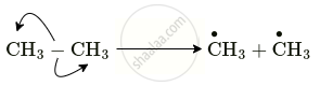 \[\ce{CH3 - CH3 ->[U.V. light] \overset{\bullet}{C}H3 + \overset{\bullet}{C}H3}\]