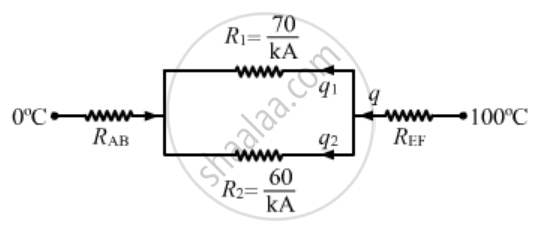 Consider the situation shown in the figure . The frame is made of the same material and has a uniform cross-sectional area everywhere. Calculate the amount of heat flowing per second through a cross section of the bent part if the total heat taken out per second from the end at 100°C is 130 J.