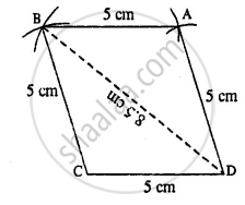 - From B and D, draw arcs of radii 5 cm each which intersect at A.