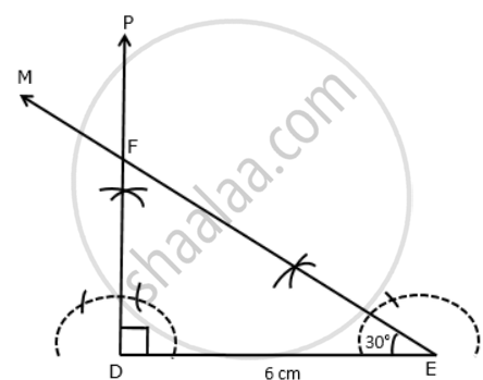 Construct a right-angled triangle in which Side DE = 6 cm and ∠E = 30°, ∠D = 90°