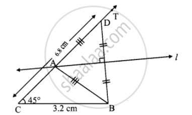 BC = 3.2 cm, ∠ACB = 45° and AB + AC = 6.8 cm ...(i)