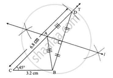 - Draw perpendicular bisector of seg DB intersecting ray CT. Name the point as A.