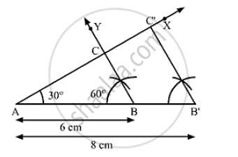 Construct a ΔABC in which AB = 6 cm, ∠A = 30° and ∠AB = 60° . Construct another ΔAB'C ' similar to ΔABC with base AB’ = 8 cm.