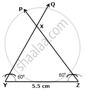 Construct an isosceles triangle in which: XY = XZ, YZ = 5.5 cm and ∠X = 60°