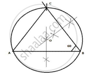 Construct Δ ABC in which AB = 5 cm, BC = 4. 5 cm and ∠ ABC = 60" .. Construct a cirde to circumscribe. Δ ABC.
