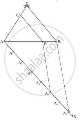 So, we take five parts out of seven equal parts on AX from point A5 draw A5B' || A7B and meeting AB at B’.