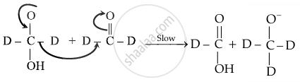 \ce{D - C - OH + CD3O ->[Na^+][fast] D - C - O^- + Na^+ + CD3OH}