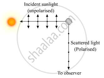 Show with the help of a diagram, how unpolarised light from Sun gets linearly polarised by scattering.