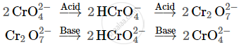 The dichromate ion `(Cr_2O_7^(2-))` exists in equilibrium with chromate `(CrO_4^(2-))` ion at pH 4. However, by changing the pH, they can be interconverted.