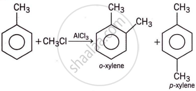 Describe with chemical equation what happens when chloromethane is reacted with toluene in the presence of anhydrous aluminium chloride?
