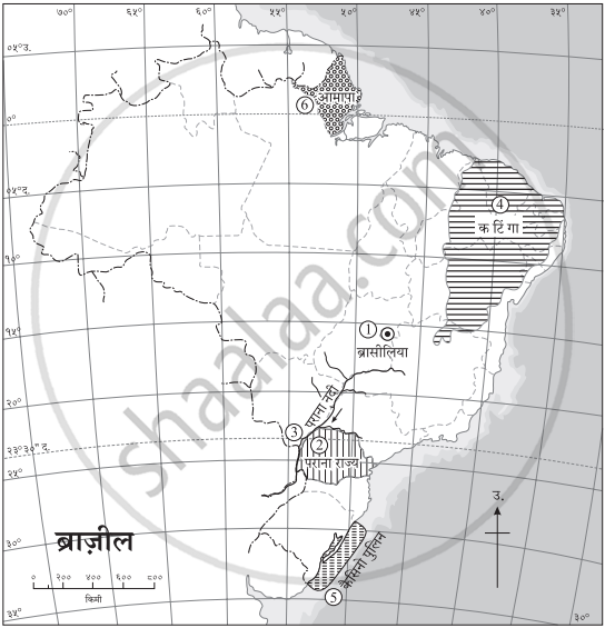 दिए गए ब्राज़ील के मानचित्र में निम्नलिखित को दर्शाइए, सूची बनाइए तथा नाम भी लिखिए:
