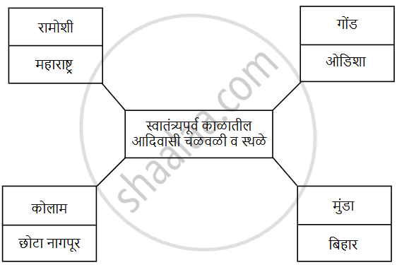 दिलेला आकृतिबंध पूर्ण करा: स्वातंत्र्यपूर्व काळातील आदिवासी चळवळी व स्थळे रामोशी, गोंड, कोलाम, मुंडा. - History and Political Science [इतिहास व राज्यशास्त्र]