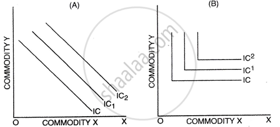 (A) shows straight-line indifference curves for perfect substitutes where goods are exchanged at a constant rate.