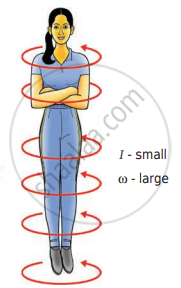 Stretching of hands away from body increases moment of inertia, thus the angular velocity decreases resulting in a slower spin. When the hands are brought close to the body, the moment of inertia decreases, and thus the angular velocity increases resulting in a faster spin. A diver while in the air as in Figure B curls the body close to decrease the moment of inertia, which in turn helps to increase the number of somersaults in the air.