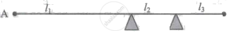 A thin wire of 99 cm is fixed at both ends as shown in figure. The wire is kept under a tension and is divided into three segments of lengths l1, l2, and l3 as shown in figure. When the wire is made to vibrate respectively with their fundamental frequencies in the ratio 1:2:3. Then the lengths l1, l2, and l3 of the segments respectively are (in cm).