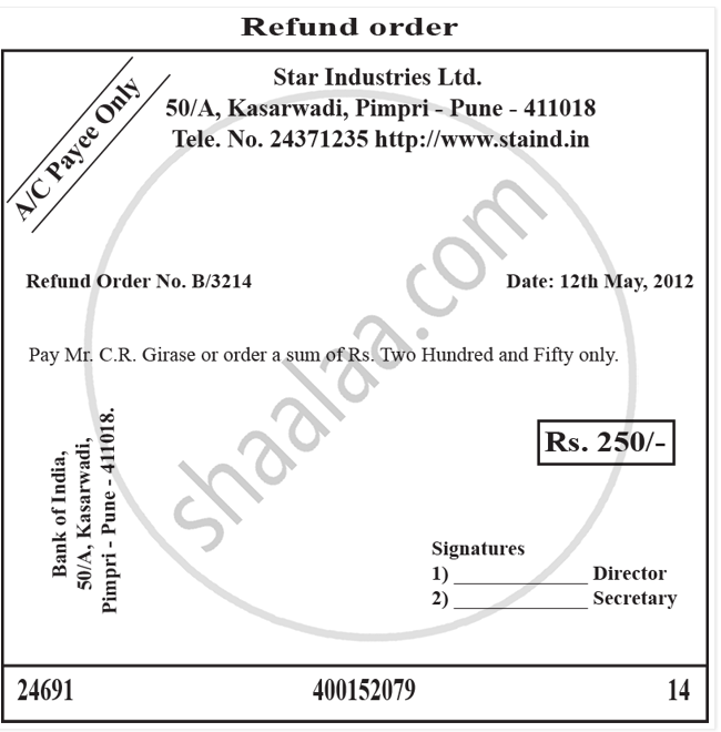 We thank you for the intrest which you have shown in our compaany kindly acknowledge the receipt of the refund order and oblige.