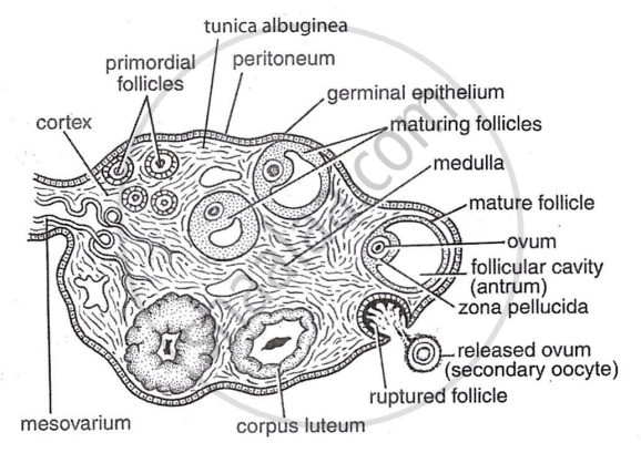 Draw a labelled diagram of a section through the ovary.