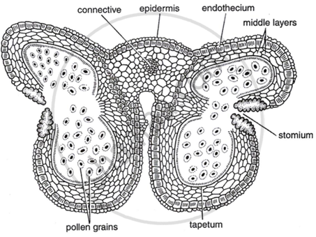 Draw a labelled diagram of the T.S. of a mature anther.