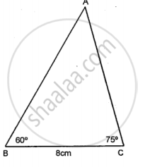 Draw a line segment BC = 8 cm. Using set-squares, draw ∠CBA = 60° and ∠BCA = 75°. Measure the angle BAC. Also measure the lengths of AB and AC.