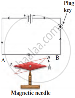 Draw a neat labelled diagram to show the magnetic effect of electric current.
