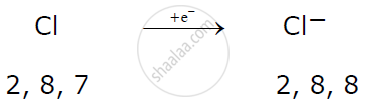 A non-metallic atom like chlorine gains 1 electron to attain a stable electronic configuration and becomes an anion.
